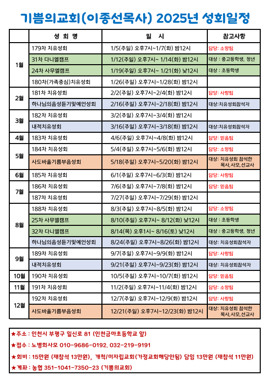 2025년 191차 치유대성회 안내 - 등록마감합니다 (10/25)